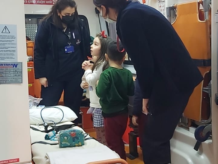 Egekent Hastanesi sağlık personelleri tarafından anaokulu öğrencilerine ambulans eğitimi Büyükşe...